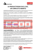 CCOO denuncia la falta de transparencia y equidad en la gestión de la productividad en el CSIC. CCOO critica que la Resolución vigente fue aprobada sin acuerdo y señala opacidades en la asignación de complementos (PC2, PC3, PCIE, PRO), arbitrariedad entre centros y situaciones de exclusión injustificada (PC1, PL…). La estructura actual perpetúa desigualdades, doble escala salarial y falta de control.