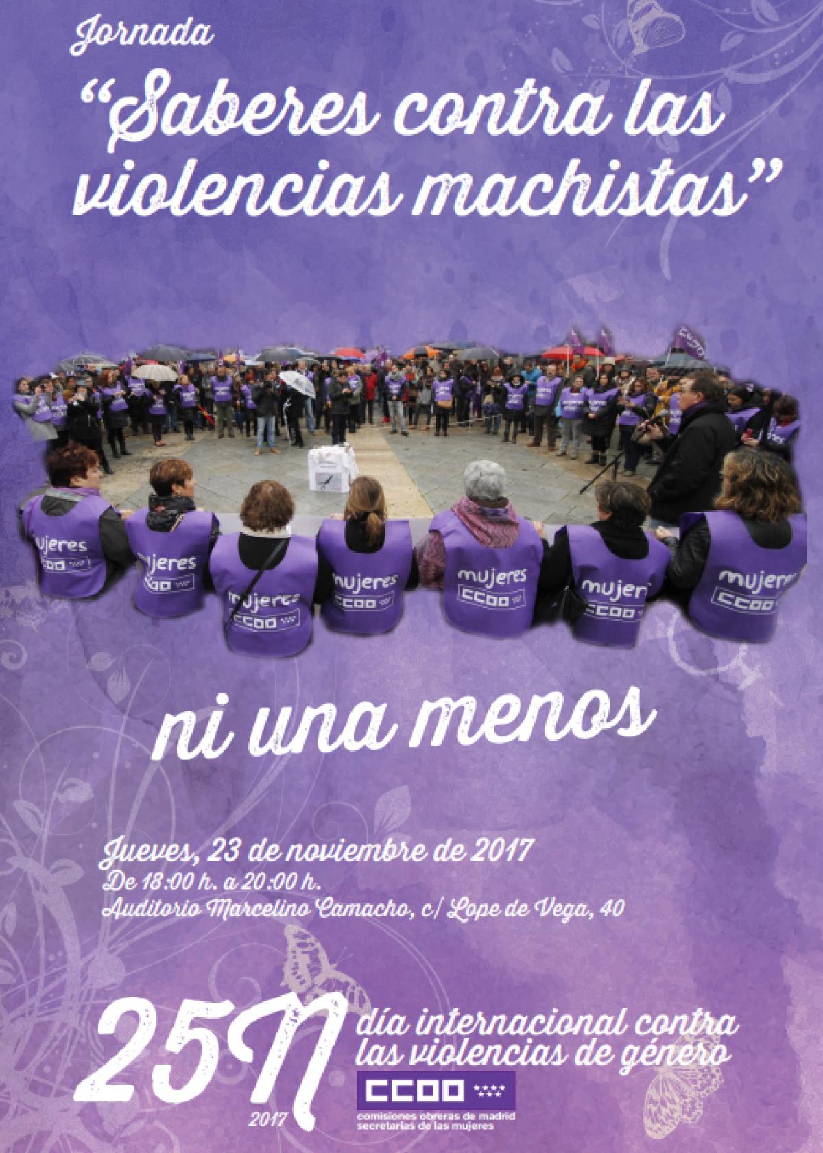 • -Jueves, 23 de noviembre de 2017 18h, Jornada "Saberes contra las violencias machistas", Auditorio Marcelino Camacho, c/ Lope de Vega, 40 Madrid