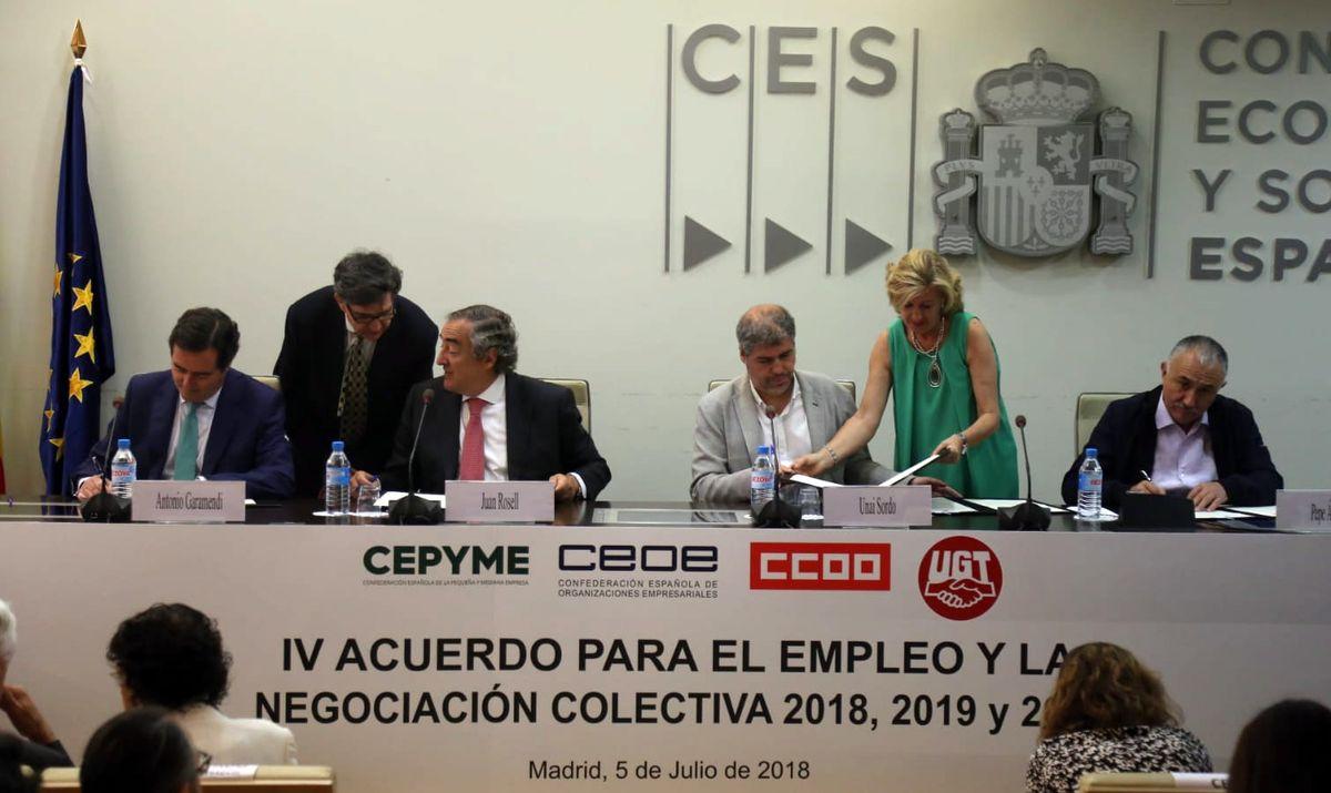 Sindicatos y patronal firman el acuerdo para la subida salarial y proponen a Gobierno y partidos pol铆ticos cambios en la legislaci贸n laboral