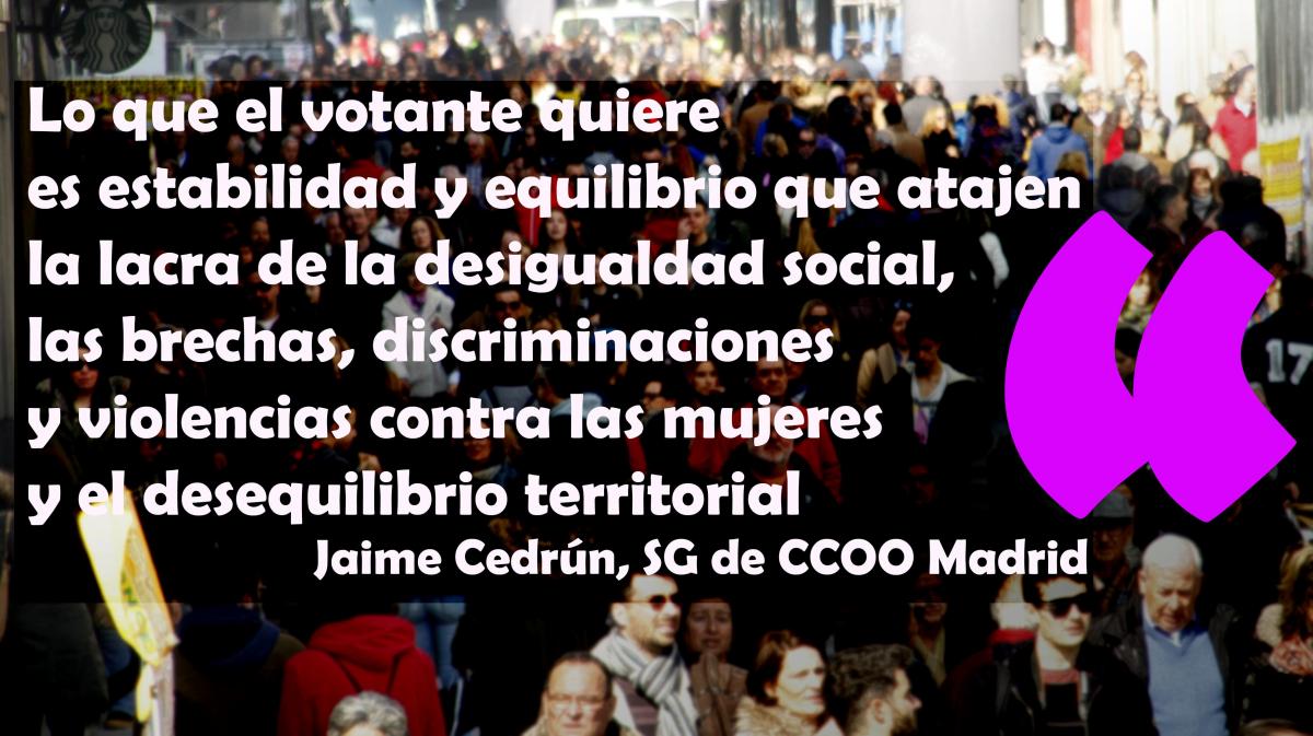 • Art铆culo de opini贸n de Jaime Cedr煤n, secretario general de CCOO de Madrid