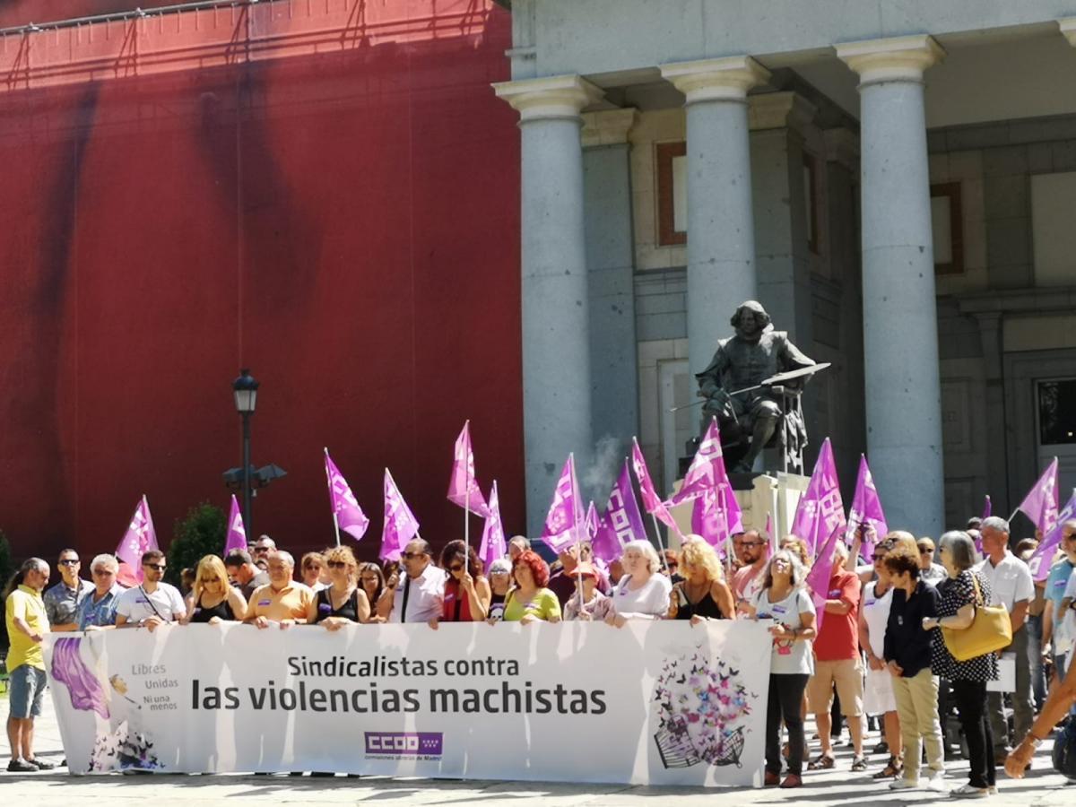 CCOO de Madrid se ha concentrado, como cada vez que se produce un asesinato machista, frente al Museo del Prado para manifestar su máxima repulsa hacia la violencia machista.