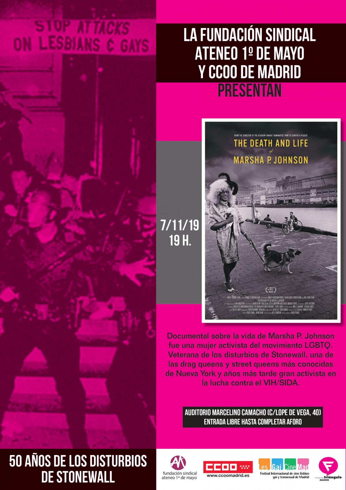 Jueves, 7 de noviembre: DEATH AND LIFE OF MARSHA P. JOHNSON (2017), un documental de David France con Victoria Cruz, Marsha P. Johnson y Sylvia Rivera.