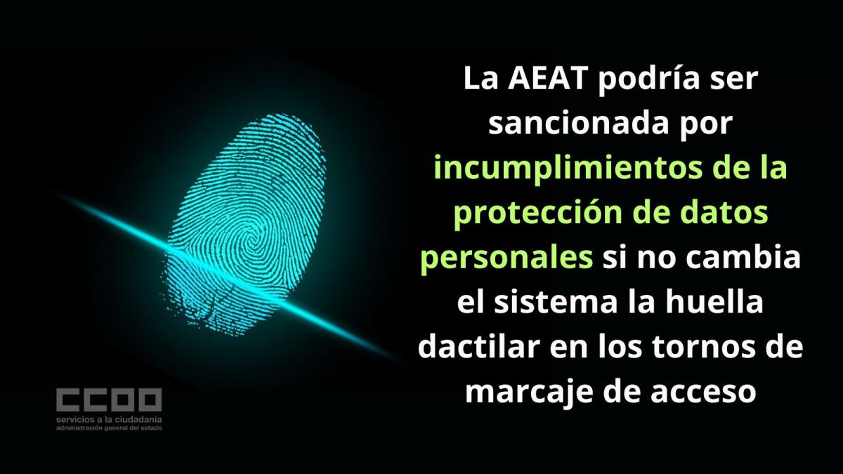Hablamos de un dato personal biométrico especialmente sensible y protegido, como es la huella dactilar de sus empleados y empleadas. Ante la gravedad de aquellos incumplimientos, la inquietud provocada entre el personal afectado y en esta Sección Sindical, y la absoluta falta de información a la representación de los trabajadores sobre todo lo relacionado con este cambio, CCOO solicitaba a esa Dirección la convocatoria de reunión para abordar dicho asunto. La respuesta de la AEAT fue, sin embargo, un completo silencio, por lo que no tuvimos más alternativa que denunciar esta situación a la Agencia Española de Protección de Datos. Una denuncia que inexplicablemente tardó tres años en resolverse y de forma negativa, con un procedimiento, a nuestro entender, sorprendentemente oscuro, y una resolución notablemente apresurada e incoherente a pesar del tiempo transcurrido.